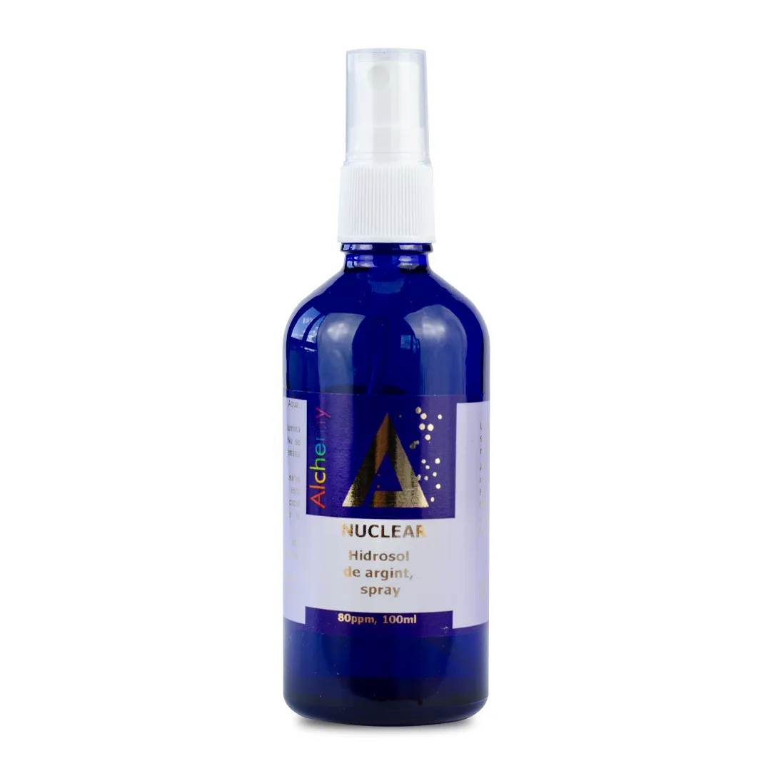 Pentru necesitati care pot surveni oricand, Nuclear va ofera puterea terapeutica a argintului coloidal intr-un flacon confortabil. Puteti pulveriza la nevoie germenii care incearca sa va cucereasca ambientul, sau pe dumneavoastra.
